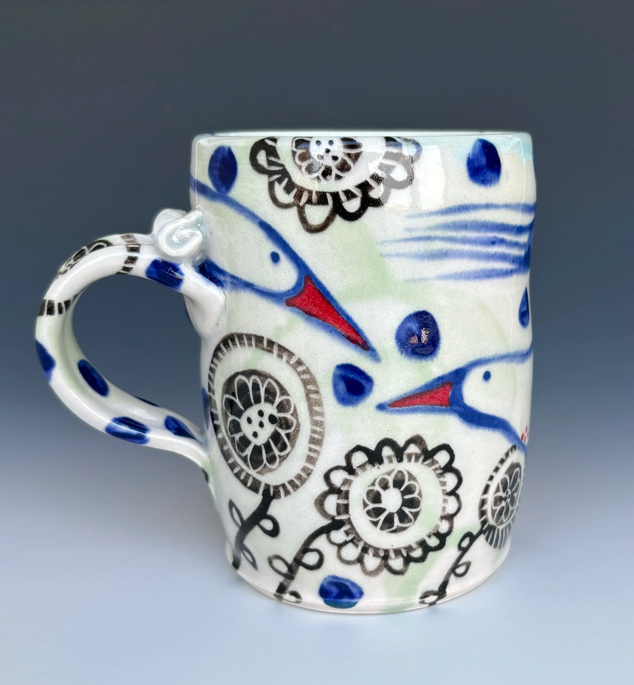 Odd Birds $49 4.75x3x5 Porcelain Cone 6 Color slips Clear glaze
