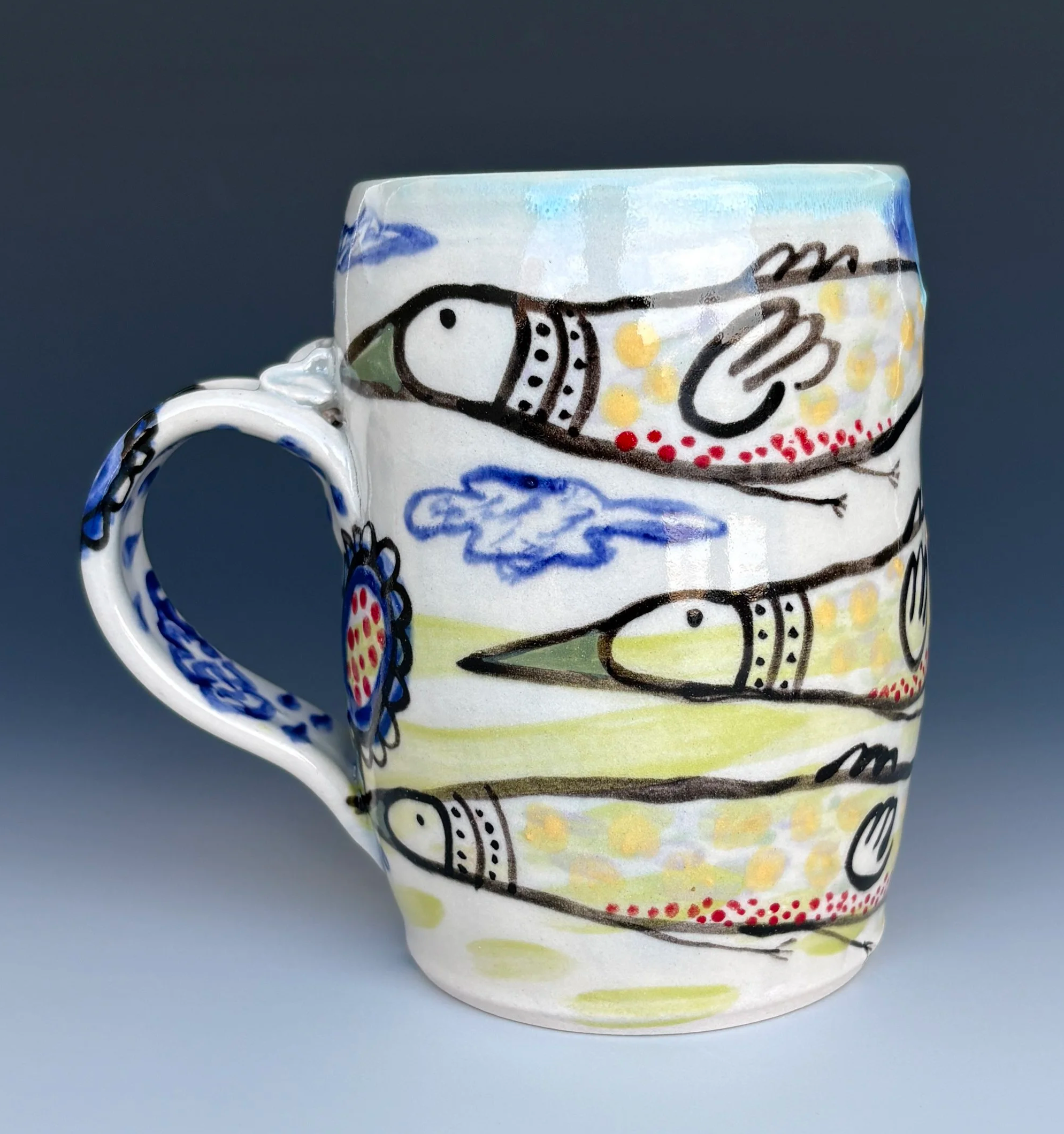 Around the Sun $49 4.75x3.5x5 Cone 6 Porcelain Color slips Clear glaze