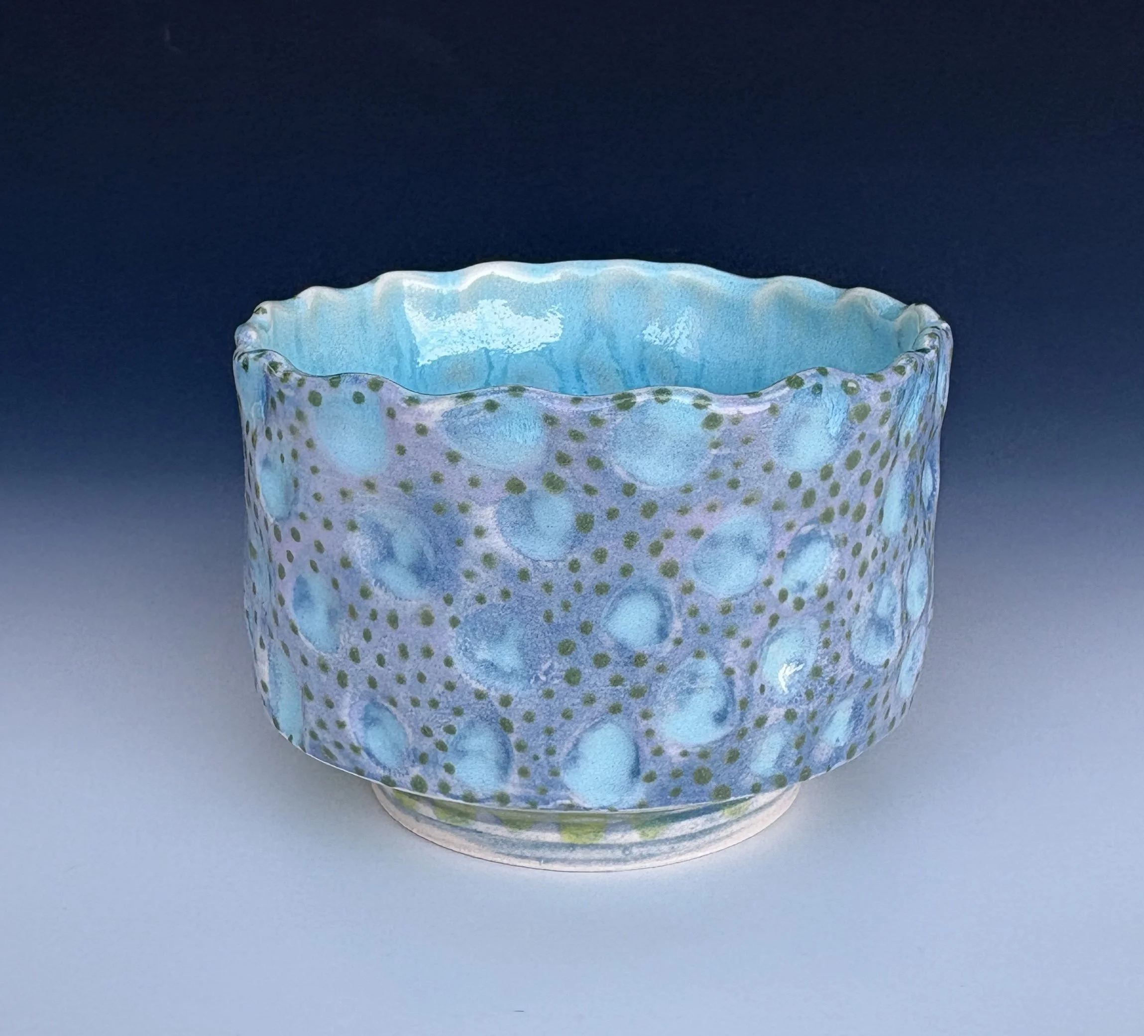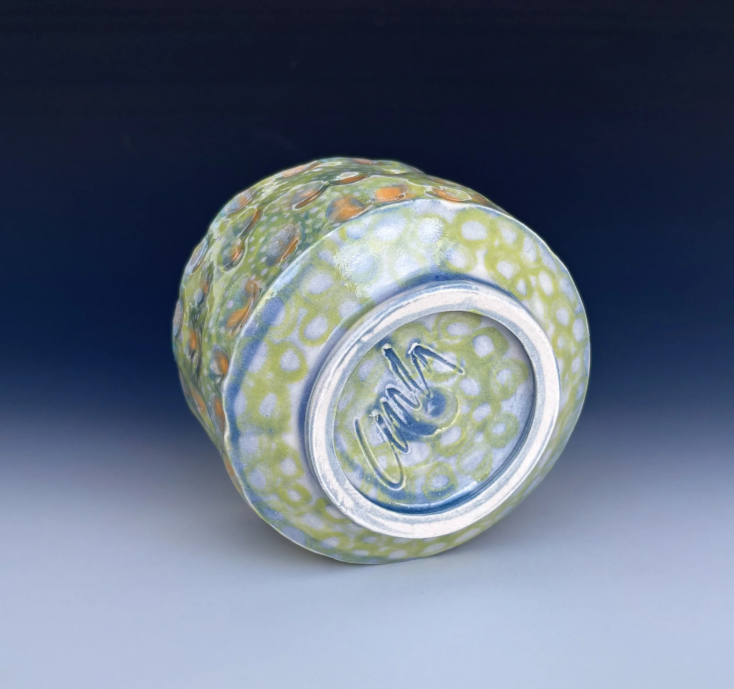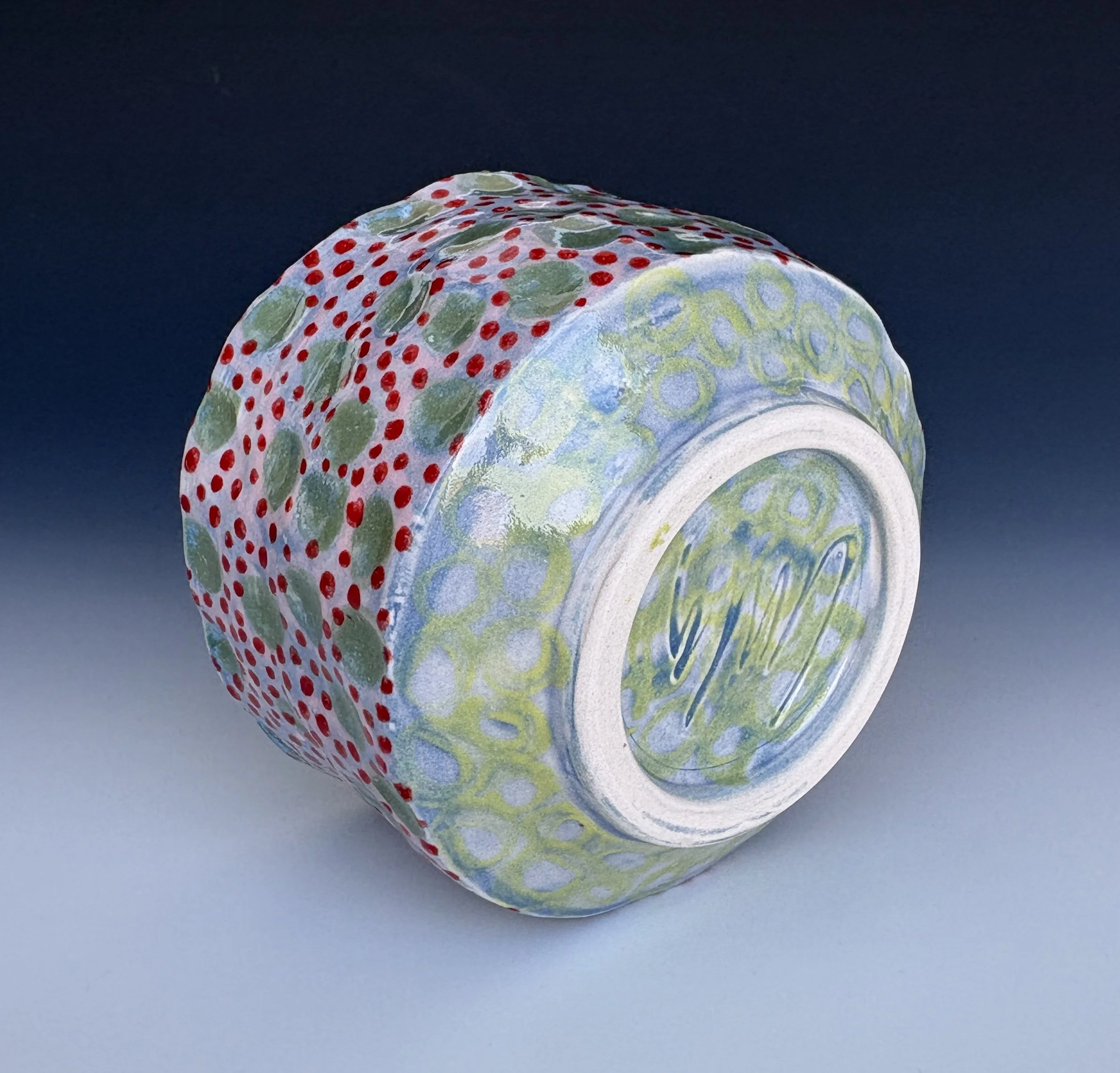 Dot Constellation 2, 3x4.25 round, porcelain, color slips, clear & aqua glaze 59.00